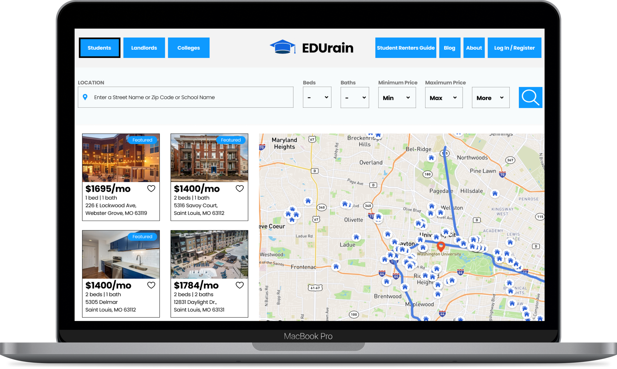 Redesigned EDUrain’s website to make it easier for students to look for off campus housing.