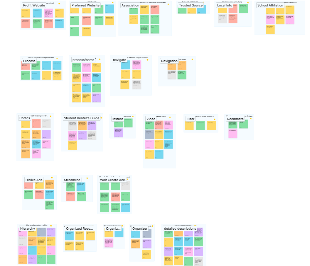 My team used Affinity Mapping to sort our interview responses. We made sure to put each response in a specific category. Some categories had larger responses so we had to create subcategories for each of the responses.